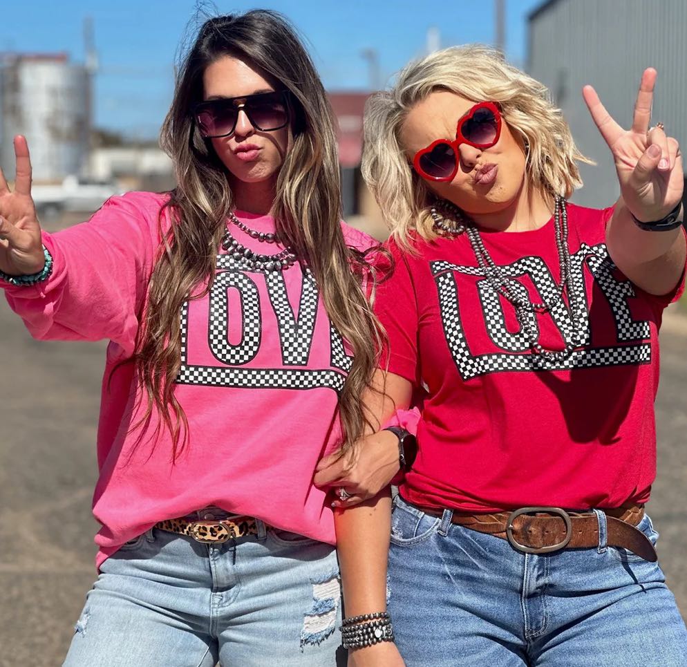 [Checkered Love] Hot Pink Sweatshirt
